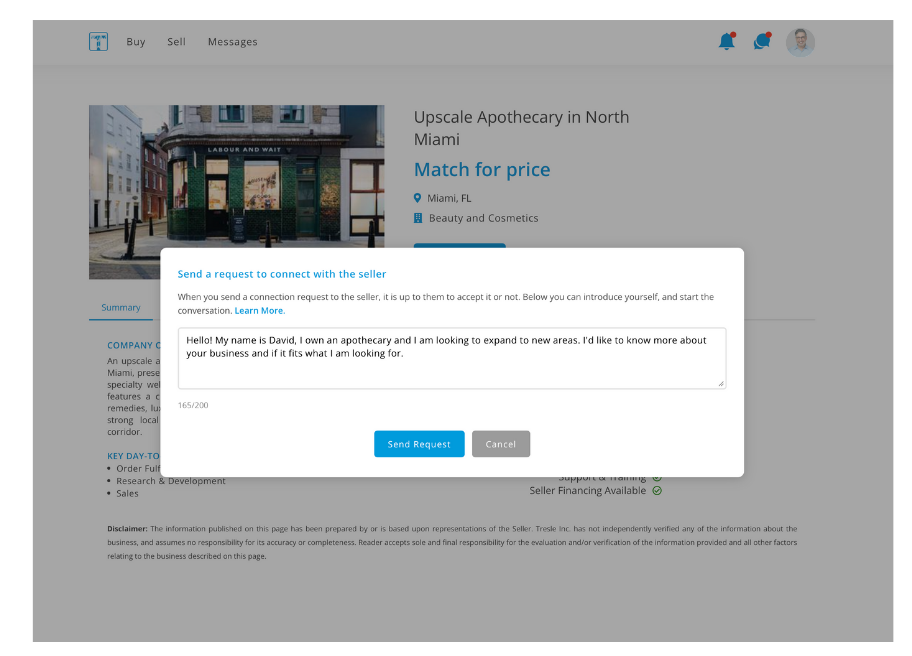 When reaching out to a seller, you can include a personal message to introduce yourself. A short, friendly introduction can help build trust and improve your chances of having your request accepted.