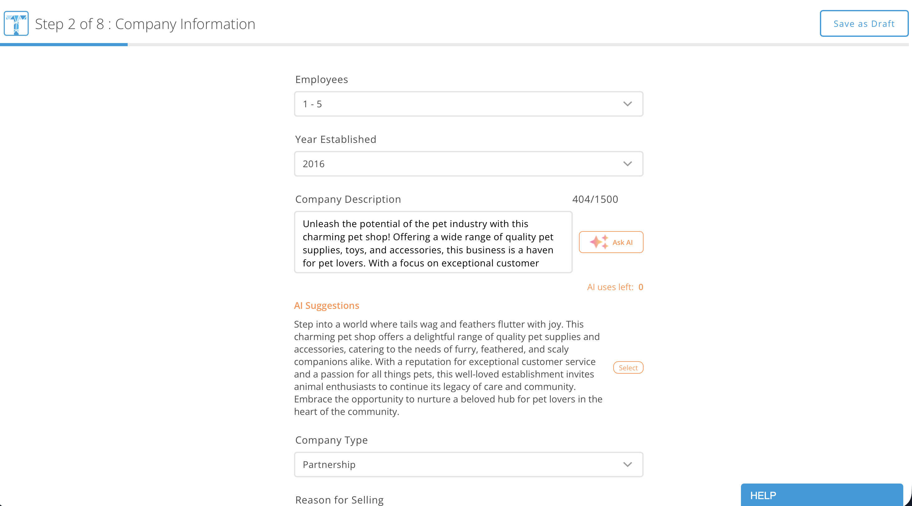 For a detailed and accurate description, make sure all fields in Step 1 are filled out first.